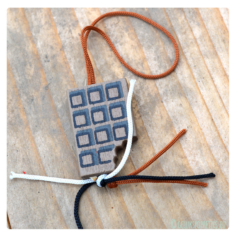 The chocolate lucky charm is approximately 23 mm in size and has black, white and brown strings, the same colour as chocolate.