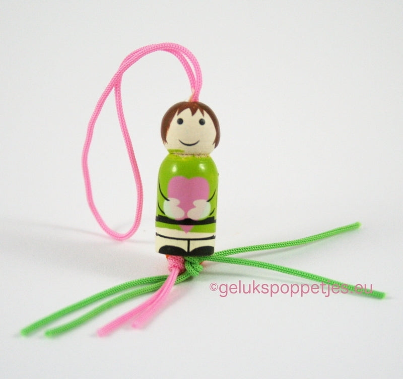 This lucky charm is a cute wooden lucky charm, about 23 mm tall, with a huge heart! It's designed as a lucky charm for Astrid, our daughter. But it's also a lovely little lucky charm to give to your girlfriend.