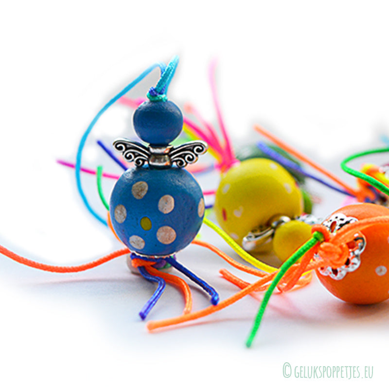 Colored dot angels, approximately 21 mm in size. These lucky angels are supplied in assorted colors; the price is per piece, and the bead caps on the bottom of each lucky angel vary and may therefore differ from the photo. These handmade lucky angels are available with or without a button on the head, depending on your preference. If we don't have the same color head as the belly at the time of making them, we will make them in different colors.