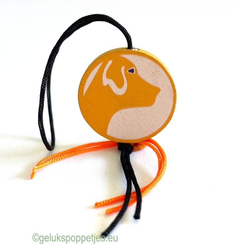 Lucky dog with a paw print on the back. This unique lucky charm is our own design and measures approximately 25 mm in diameter.
