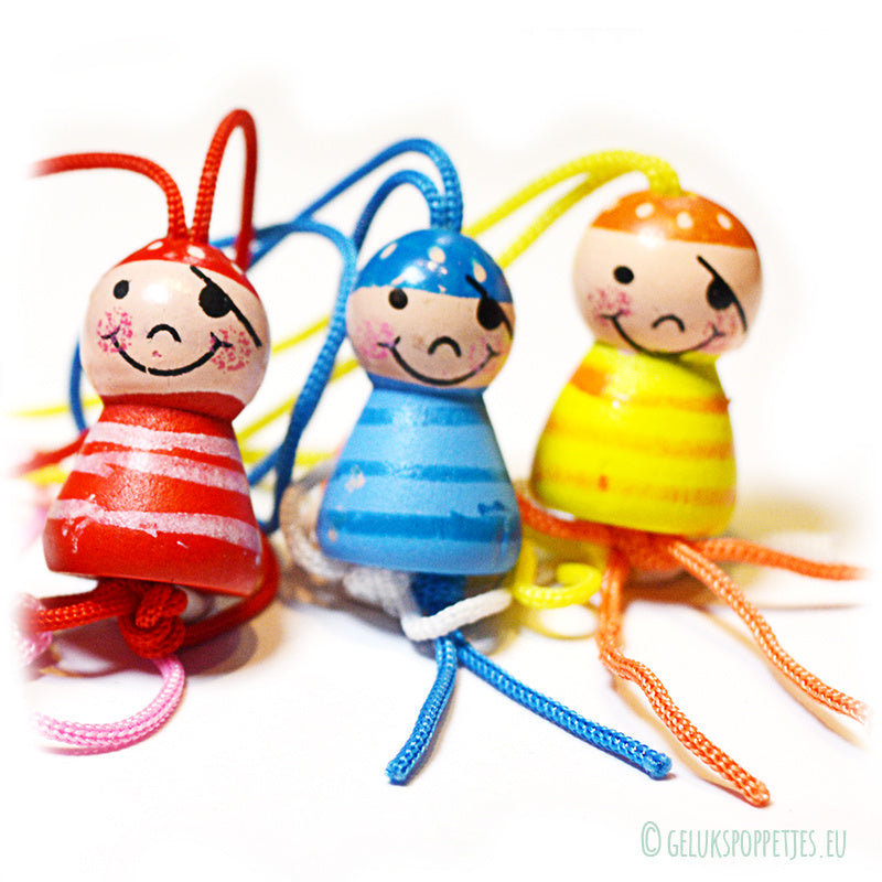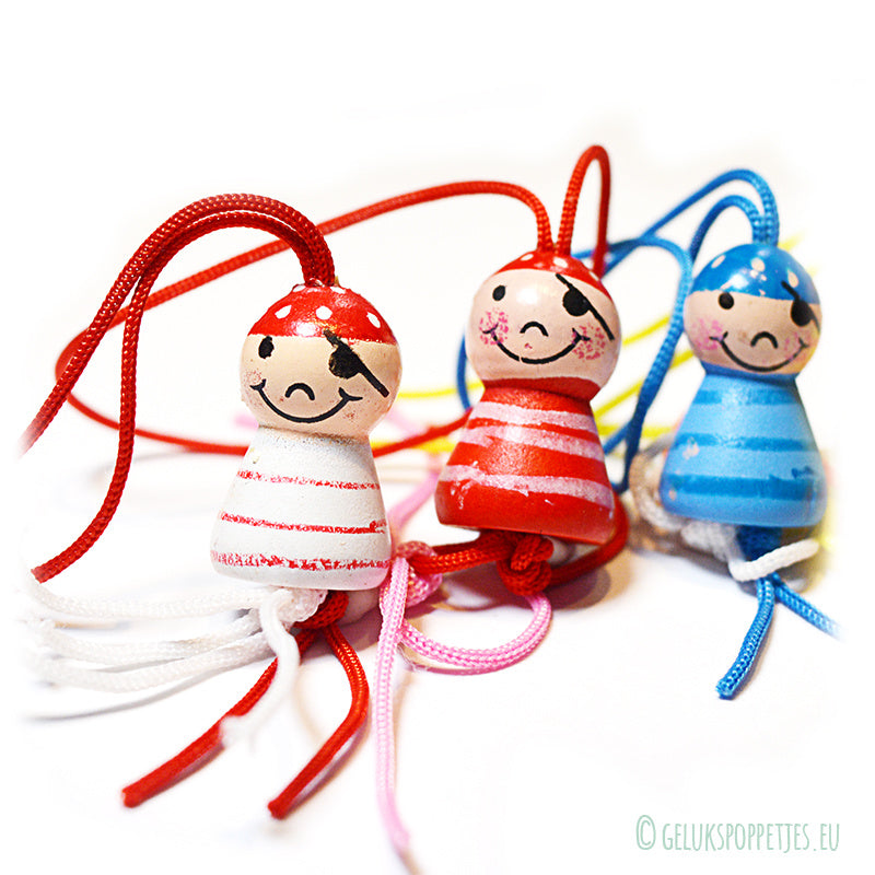 Cheerful wooden lucky pirate dolls in 4 different designs. These lucky pirates are approximately 18 mm tall and come in assorted pieces.