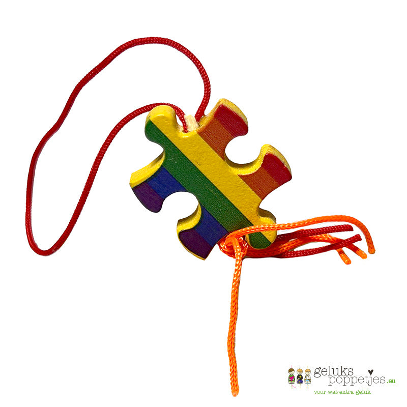 Lucky puzzle piece with rainbow colors. These lucky puzzle pieces measure approximately 26x20 mm. They're great to give to your friends.