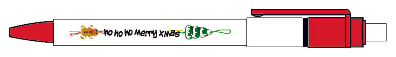 A real Christmas lucky doll pen with images of our lucky dolls, gingerbread man, and Christmas tree.