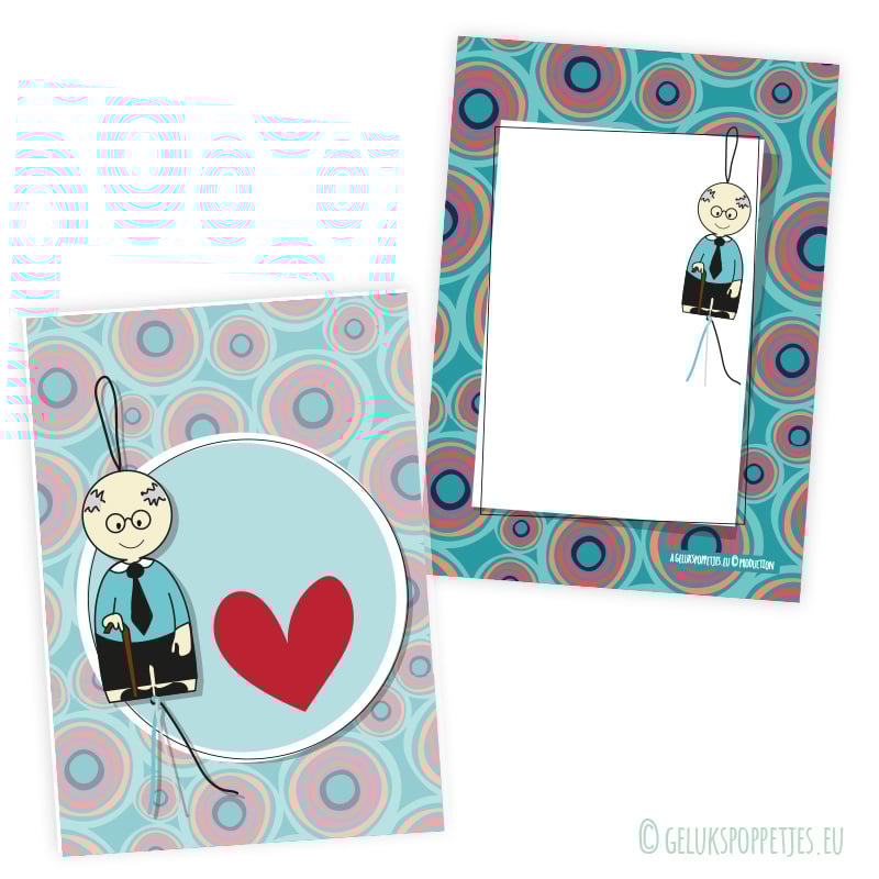 Grandpa lucky doll card in retro style. This lucky card is approximately 10.5x7.4 cm and made of 300-gram paper.