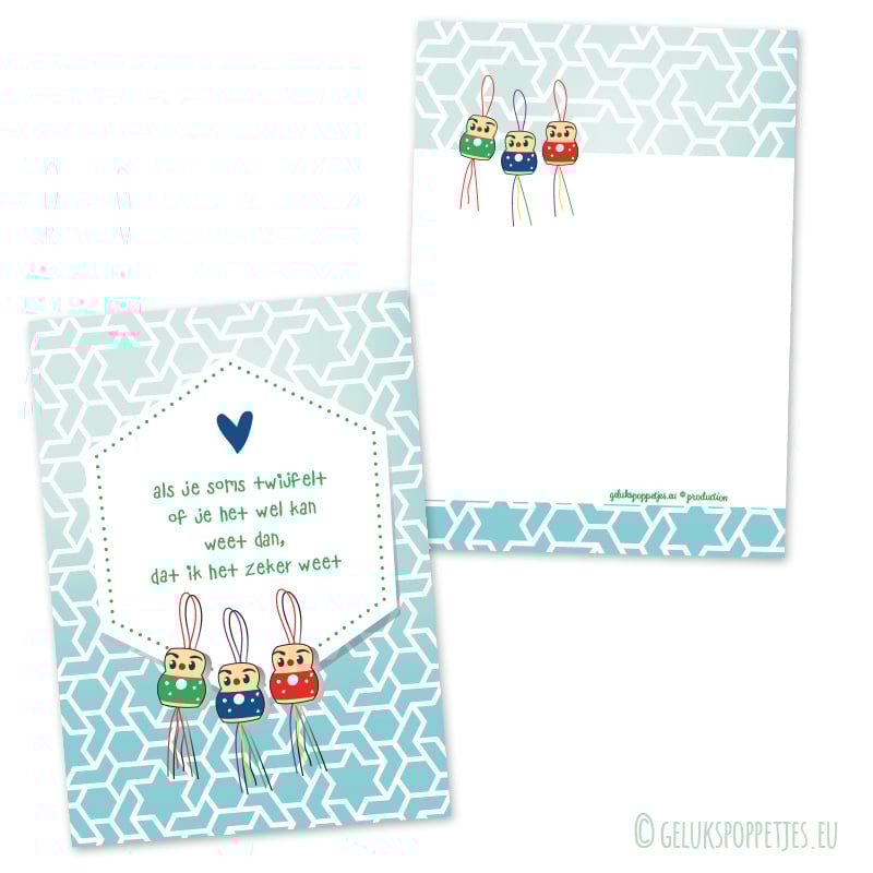 Al onze gelukspoppetjes uit eigen collectie zijn gemaakt van FSC duurzaam hout en geschilderd op waterbasis. Zo is het geluk dat jij geeft ook nog eens goed voor moeder natuur.