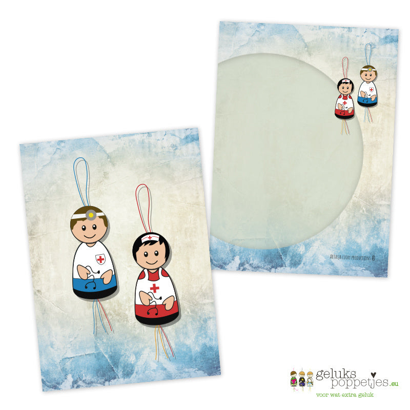 A lovely card featuring the nursing staff's lucky charms. The lucky doctor and nurse, nurse, or nurse. Hospital staff will be delighted to receive a card to thank them, but it's also a nice card for someone who's ill, reminding them that the doctor and nurse should take good care of them.