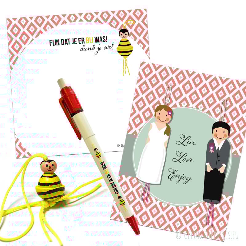 Lucky charm notepad featuring the image of the lucky bee. These notepads are approximately 10x10 cm and contain 25 printed sheets of paper.