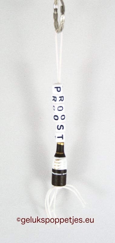 Lucky bottle with the word CHEERS. Perfect for a bottle of wine or other drink. We can also make this lucky charm keychain with another word of your choice, or with someone's name (max. 7 letters). You can specify this name or word in the comments during checkout or by email! Assorted red and white wine will be delivered; the strings may vary from the photo.