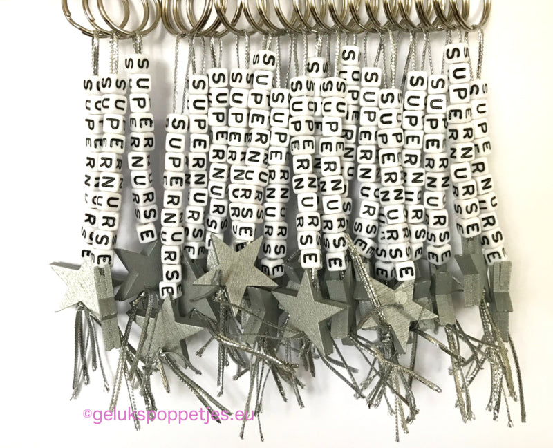 Supernurse keychain with the lucky nurse/nurse charm or one of the other lucky charms from our collection. Perfect for Nurses' Day or Care Day, but also a nice gift for the hospital nurses who took such good care of you! If you'd like a different lucky charm, please let us know.